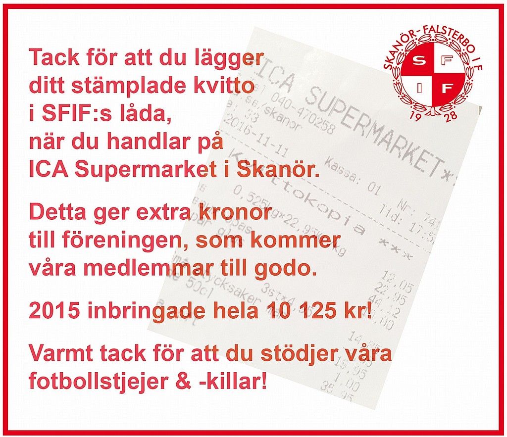 Tack för att du lägger stämplade kvitto i SFIF:s låda på ICA i Skanör