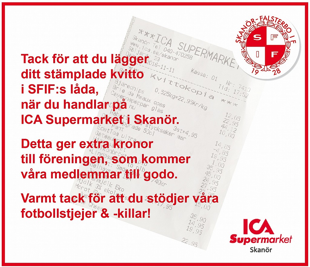 Tack för att du lägger stämplade kvitto i SFIF:s låda på ICA i Skanör