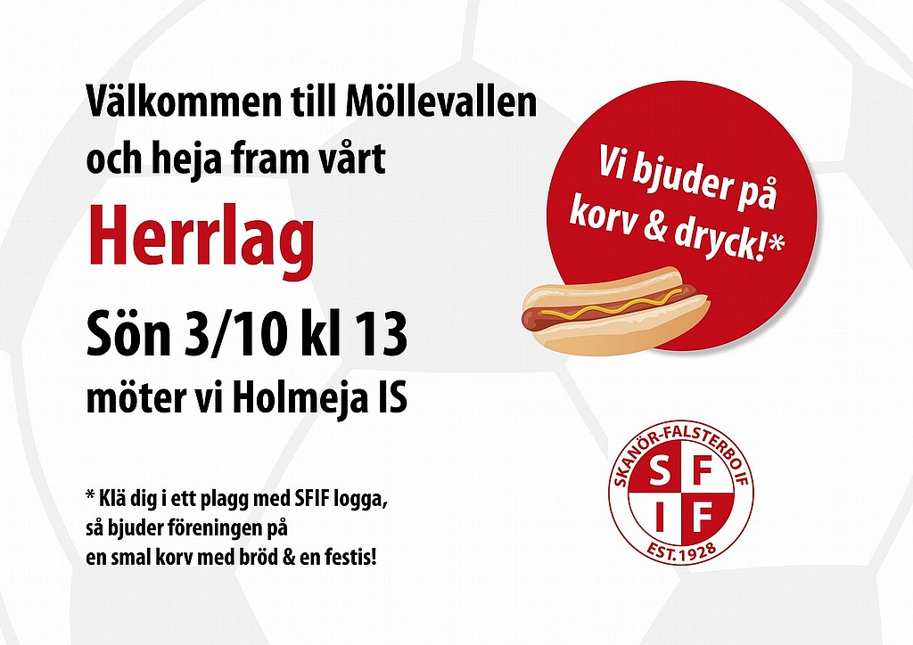 * Klä dig i ett plagg med SFIF logga, så bjuder föreningen på en smal korv med bröd & en festis!
