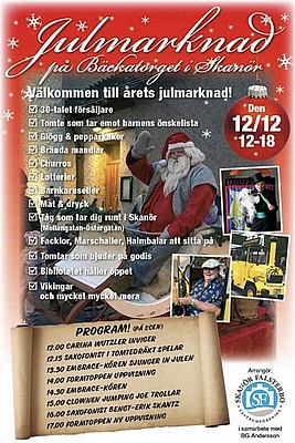 På Bäckatorget i Skanör hittar ni tomten, fina julklappar, massor med godsaker och annat skoj!