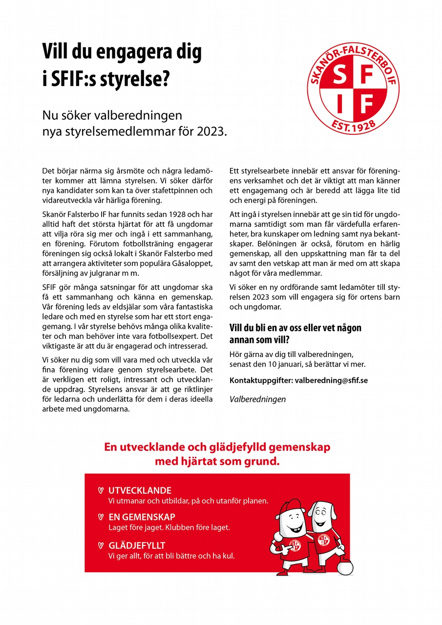 Hör gärna av dig till valberedningen, senast den 10 januari, så berättar vi mer.