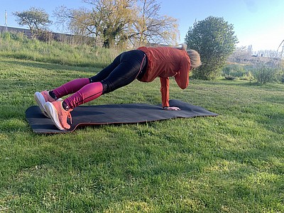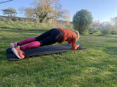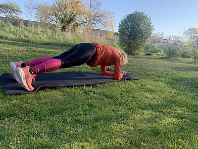 Planka med axeldutt – stå på armbågar eller händer, plan hållning,